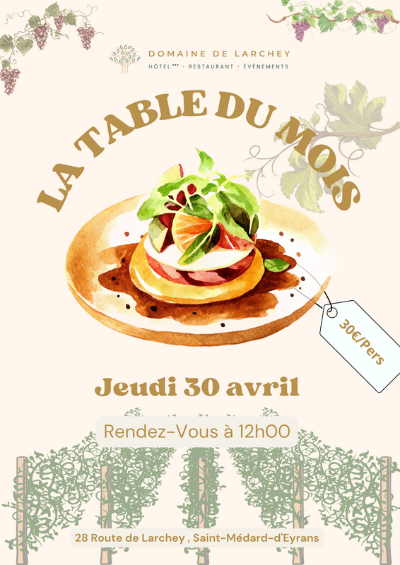 Table du mois d'Avril - Domaine de Larchey