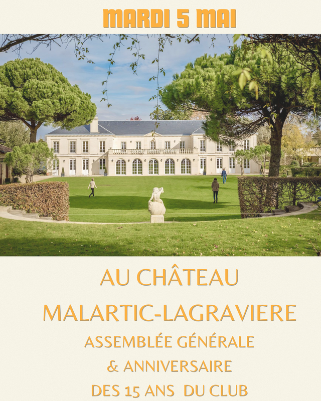 Pour fêter l'anniversaire de notre Club, nous organisons une soirée exceptionnelle au Château Malartic Lagravière, un Grand Cru Classé de Graves, alliant élégance et convivialité.Joignez-vous à nos membres, partenaires...